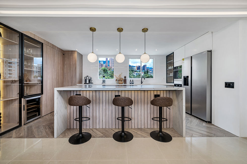 Complete remodel and interior design project. This unit had a complete closed kitchen and very weird layout, the project included moving plumbing and opening up the kitchen area to create a larger living and open space concept. Also there was 3 bedrooms, where one was converted into an office with a murphy bed, and the other two consisted of one master bedroom with ensuiste walk in closet and bathroom. And second bedroom. All the apartment was completely rebuilt from electrical outlets, interior lighting, wall coverings, paint, built ins, and furniure design.