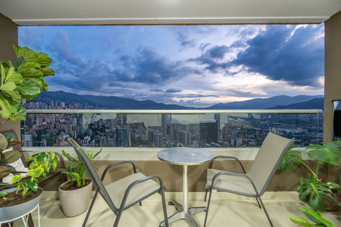 Located in the exclusive Palmas area of Poblado Neighborhood - Modern 2 bedroom, 2 full bath + extra sofa bed, rental condo on the 16th floor with the ABSOLUTE BEST VIEWS OF TOWN. Only 10 min drive from Lleras Park, you will be surrounded by not only the best city and mountains views, but also have protected forest area just right overlooking from your balcony.